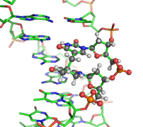 Under nutrient scarcity, certain bacteria form endospores that protect bacterial DNA from environmental damage, including UV radiation. UV light can damage DNA by forming cross-links between adjacent thymine bases (TT) in a DNA strand. Under regular conditions, such damage leads to the formation of a cyclobutane pyrimidine dimer (CPD) as the dominant photoproduct. In spores, however, the DNA photoreaction pattern changes: a special lesion, 5-thyminyl-5-6-dihydrothymine (the spore-photoproduct, SP), becomes the major form of TT damage. It is believed that SP lesions “lock” the DNA in a chemically inert state until germination, when these lesions are repaired by a specialized enzyme called spore-photoproduct lyase (SPL). Collaborating with Prof. Lei Li, we have computationally characterized several dinucleotide analogues of SP (D. Lin et al. 2012; G. Lin et al. 2011), and are currently developing all-atom models for simulating short segments of SP-containing DNA.